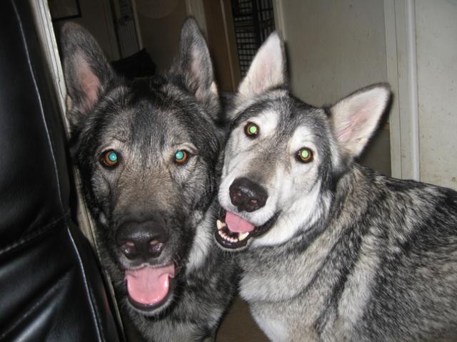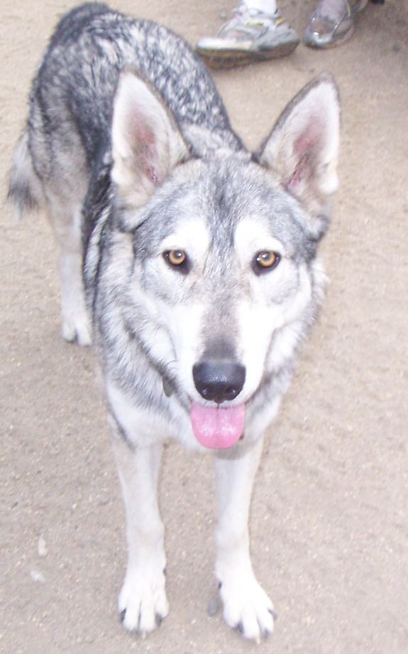 is probably a White German Shepherd and Husky Mix. She passed away 10/22/2012 at about 17 years old |