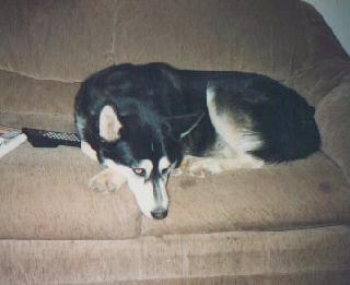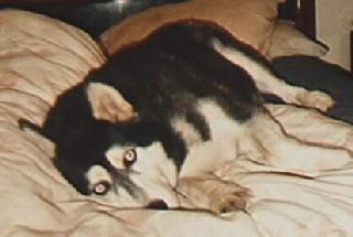 Cody Passed at 2pm on March 10, 2003 at the ripe old age of around 14 1/2. He had lost the use of his back legs, and in the last few days was unable to even stand up. For a guy that had been the Husky at the head of the pack this must have been very upsetting to him. After a few days of this it was finally apparent to me that his time had come, and I had to make the hardest decision of my life. I persuaded the vet to send their techs over to put him to sleep, after waiting an agonising few hours for them to get here, the process was very quick and was over in a matter of minutes. He went very peacefully he didn't even get up. I Love him very much and will miss him terribly, he is with his "brother" 'Cade now and we will all be together again one day.