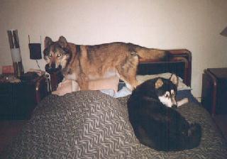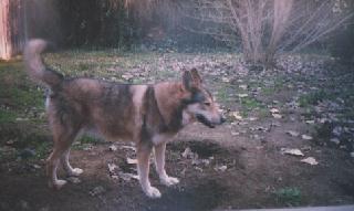 I got McQuaid from a breeder near Sacramento, he was a 4 month old a bundle of fear. He quickly warmed up to us, and began his reign of destruction. I realized this guy could and would chew anything that he could reach. Even to his last day he ate anything… rubber, plastic, wood, paper, you name it. I think this continuous life of passing indigestible things through his system is what caused his chronic illness which the Vet called "Inflammatory Bowel disease". It can usually be controlled with Flagyl and Prednisone, and usually bouts of it occured after he ate something really bad, like a plastic food bowl! However the last year the Vet put him on another drug to substitute the Prednisone called Leukeran… This is what actually killed him in the end. Beware do not give this stuff to your dog. What happened is that the side effect of this drug is to inhibit the production of the sticky blood cells that stop internal bleeding, towards the end his cell count dropped to zero and he effectively bled to death internally :-( Regular blood checks are necessary, the trouble is it seems that once this production stops it is irreversible. The drug did prevent the Bowl disease, but IMHO I think Prednisone was less destructive, although it has side effects too.